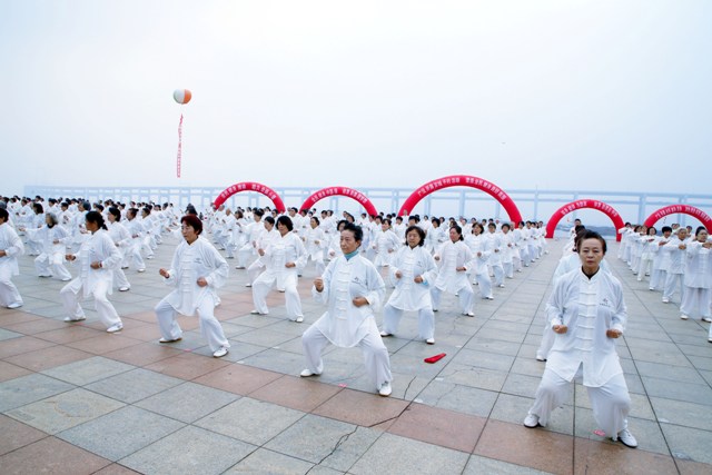 活动现场,400余名健身气功爱好者身着统一服装,伴随着清净悠扬的音乐,分别展示了易筋经、五禽戏、八段锦、马王堆导引术等多种健身气功功法。参演人员动作整齐划一,柔美刚劲,场面气势恢宏,充分展示了大连健身气功习练人群的良好风貌和全民健身工作的发展成果。