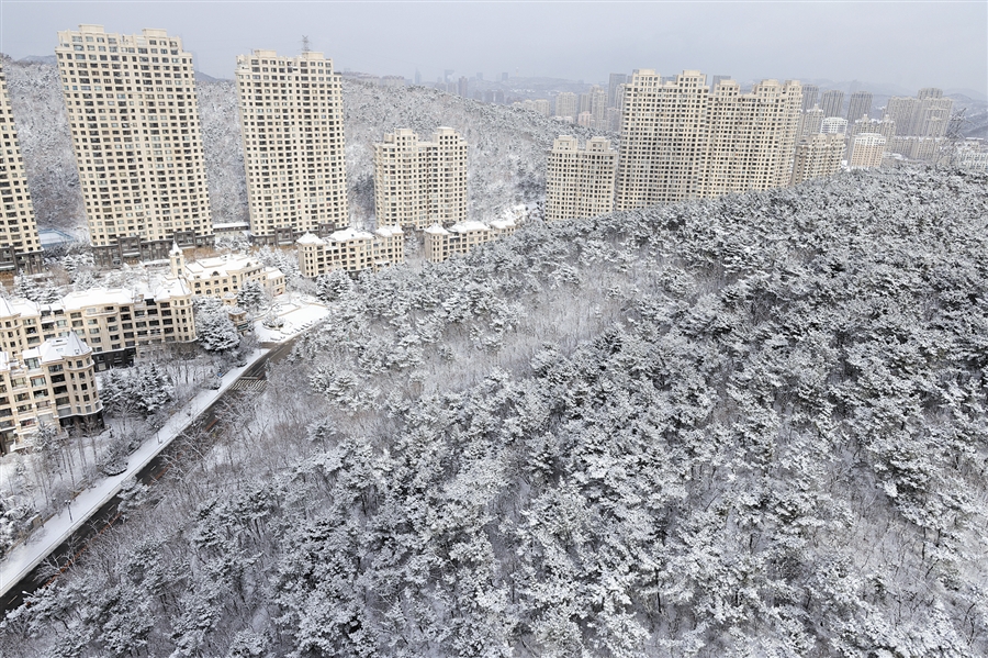 昨日上午,一场瑞雪过后,我市呈现出雪霁银装裹的美丽景象。图为秀月街雪景。大连新闻传媒集团记者杨国胜 摄