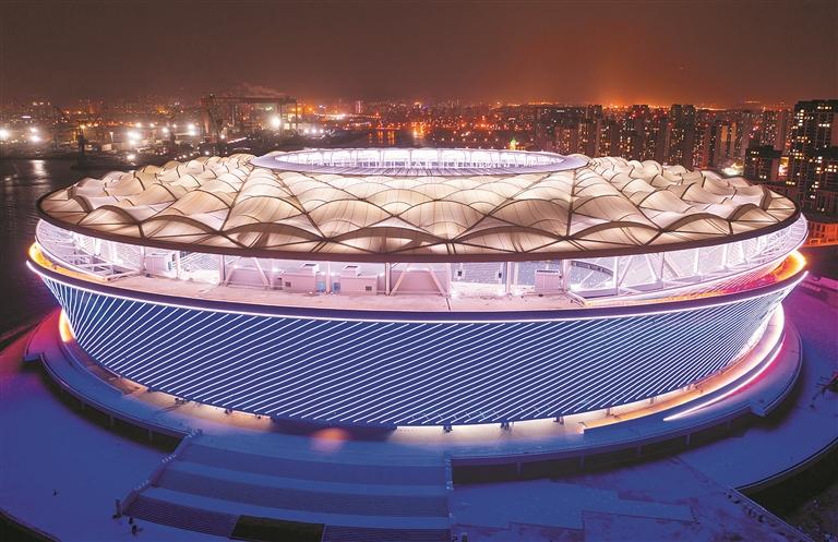 大连梭鱼湾足球场“小年”夜灯光璀璨