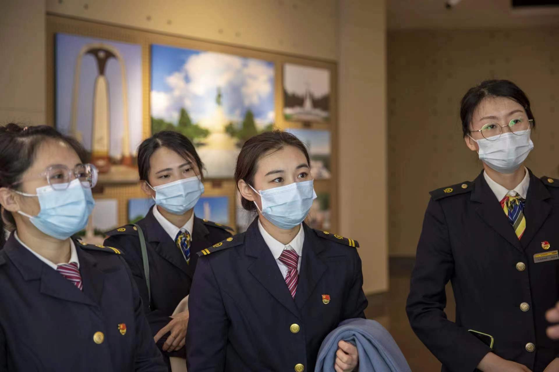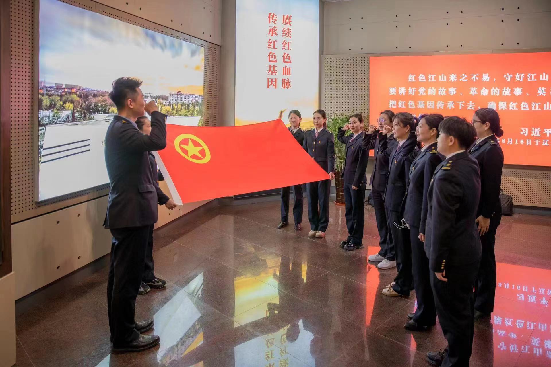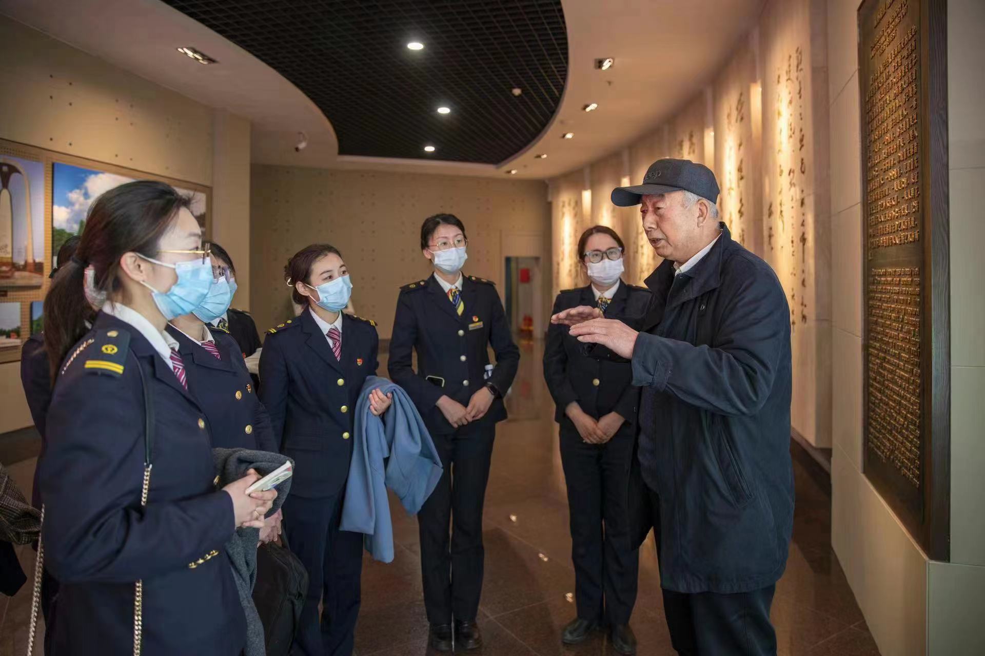 参观完毕后全体干部职工在纪念馆门前庄严列队重温誓词,关工委老同志向党团员和青工们讲述大连客运段的“老故事”“老传统”,并组织大家开展座谈交流分享参观体会,党员宋贞仪动情的说:这次参观学习让我们青年职工接受一次生动形象的爱国主义教育和革命传统教育,我要继承革命光荣传统,接过先辈们的接力棒,立足岗位做贡献,在推动铁路高质量发展的过程中争当“火车头”。