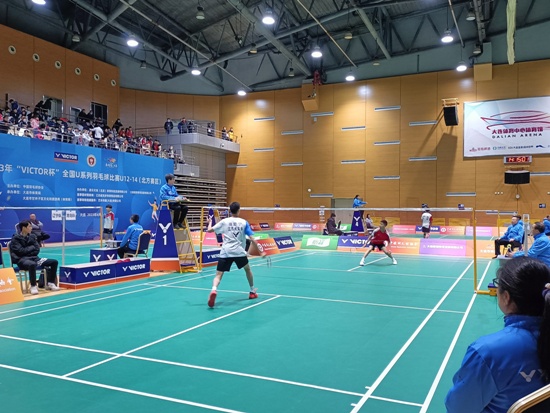 连日来,2023年全国U系列羽毛球比赛U12-14(北方赛区)正在大连体育中心体育馆激战正酣。