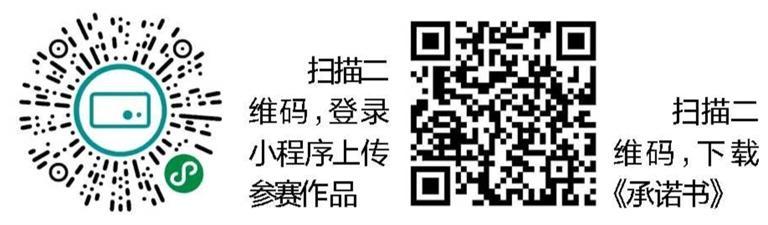 (1)扫描二维码进入小程序,上传作品及《承诺书》;