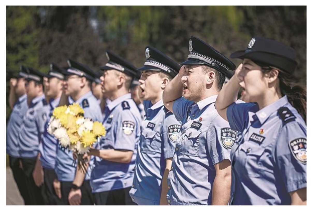 参加纪念活动的全体民警列队瞻仰烈士陵园,向革命英烈敬献鲜花脱帽默哀,深切表达对革命先烈的无限哀思和崇高敬意。全体党员民警高擎右拳,举行了庄重的重温入党誓词仪式。口号铿锵有力,展现出新时代移民管理警察捍卫国家政治安全、筑牢国门边境坚固防线的坚强意志,迸发出广大一线民警继承革命遗志、守护祖国和人民的坚定决心。