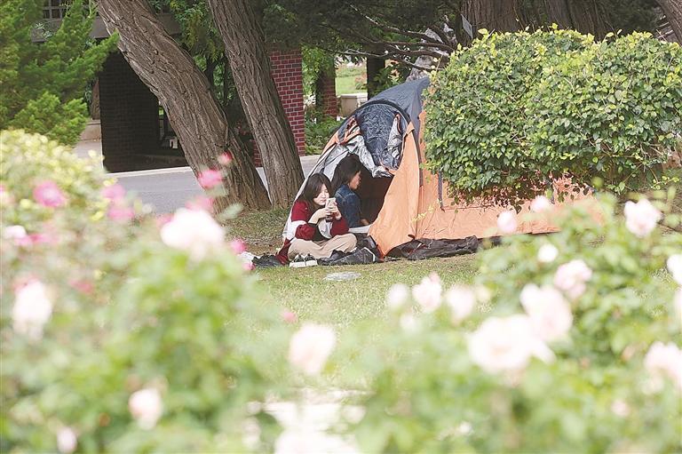 6.花间树下,一顶帐篷一个家,让时光慢慢地走。大连新闻传媒集团记者季禾子 摄
