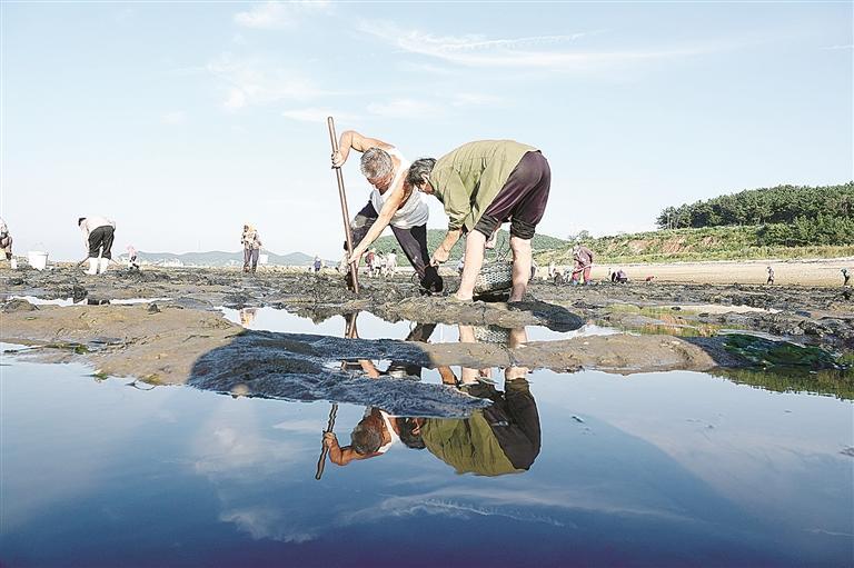 4.长海县的渔民偷得半日闲,和家人在海滩寻找独有的海鲜美味。