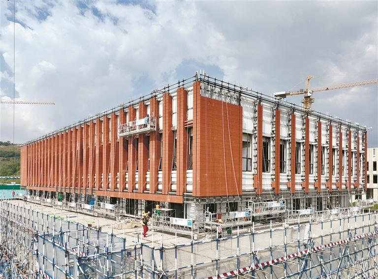 沿着旅顺南路西行,英歌石科学城规模初显。站在观景台远眺,英歌石科学城一期尽收眼底:一座座实验室拔地而起,数千名建设者坚守岗位加班加点,争分夺秒加紧建设。由中建八局东北公司承建的英歌石科学城一期首开区二标段,总占地面积约26.7万平方米,总建筑面积约24.7万平方米,共包括9个地块、25个单体,分三个工区施工。项目党支部书记黄守乐介绍,英歌石科学城A3-13地块,是英歌石科学城一期首开区二标段首个封顶的单体建筑,未来这里将是大连化物所的氢能与多能融合实验室。这个实验室的主体结构已全部完成,正进行外立面幕墙施工以及内部的装饰装修和机电管线的安装。