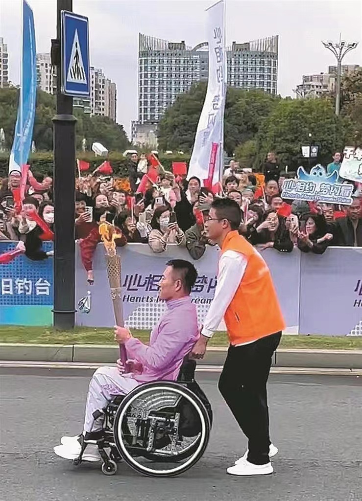 (李扬 大连新闻传媒集团记者许晓楠)10月20日,辽宁省唯一一名杭州亚残运会火炬手,来自我市的优秀残疾人运动员毛忠武,作为杭州亚残运会第67号火炬手,在被称为现代版“富春山居图”的亚残运会火炬传递路线上(桐庐县路段),坐着轮椅,手持火炬“桂冠”,在工作人员的帮助下,顺利完成了53米的火炬传递。