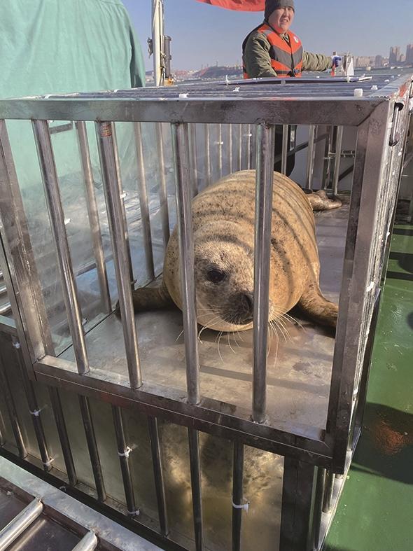 在全国水生野生动物保护科普宣传月期间,12月12日,由农业农村部、最高人民检察院、公安部和辽宁省人民政府主办,大连市人民政府承办,辽宁省农业科学院、中国野生动物保护协会协办的斑海豹放流活动在大连旅顺口区旅顺新港内举行,共有23头斑海豹重返大海。