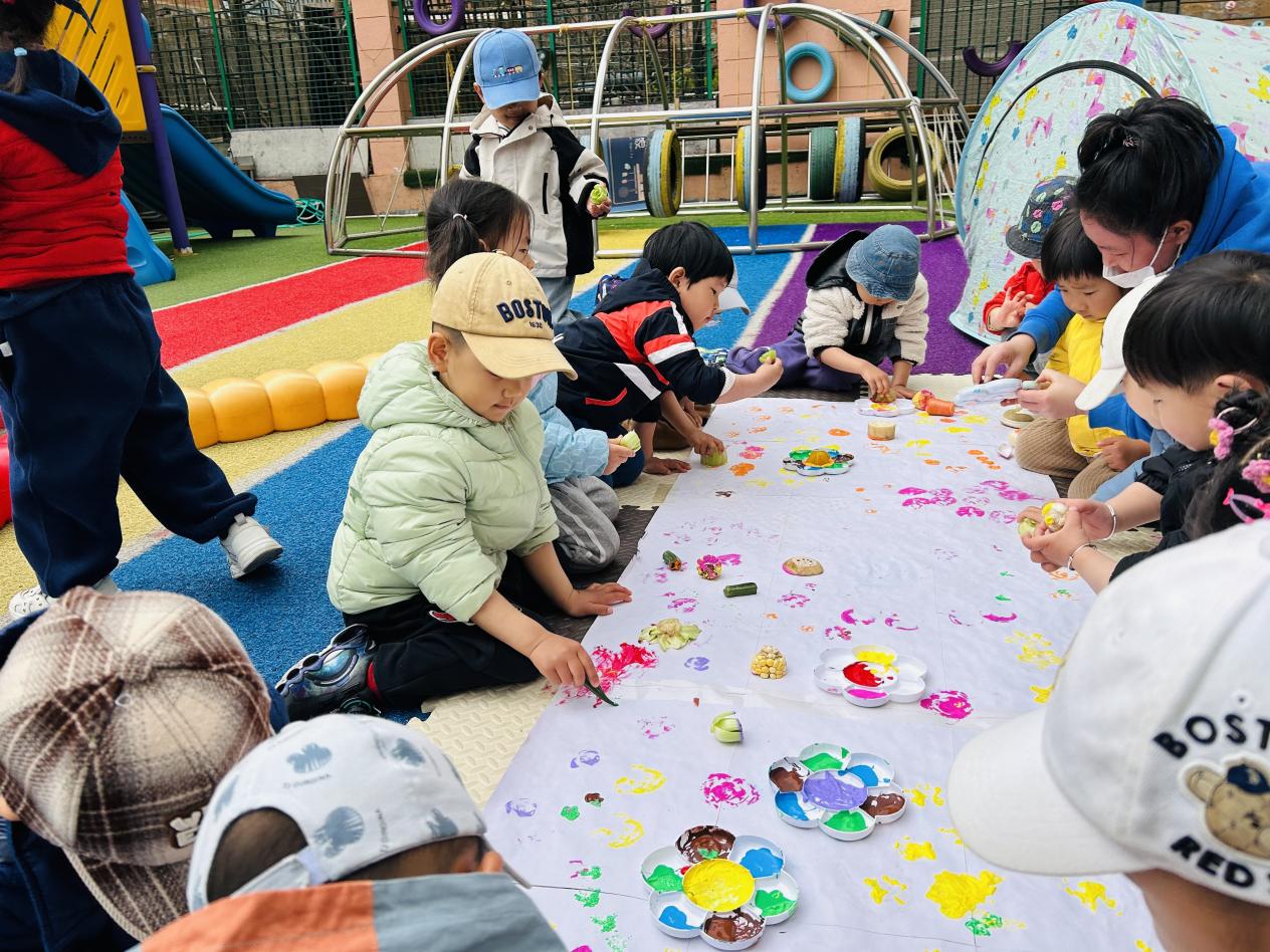 春日蔬果拓印:孩子们带来自己准备的拓印蔬菜,在教师的耐心指导下,通过观察、触摸等方式认识不同的蔬菜水果,并用这些蔬菜拓印出独特的纹路,在动手实践中感受艺术创作的乐趣,同时也加深了对自然的认知。