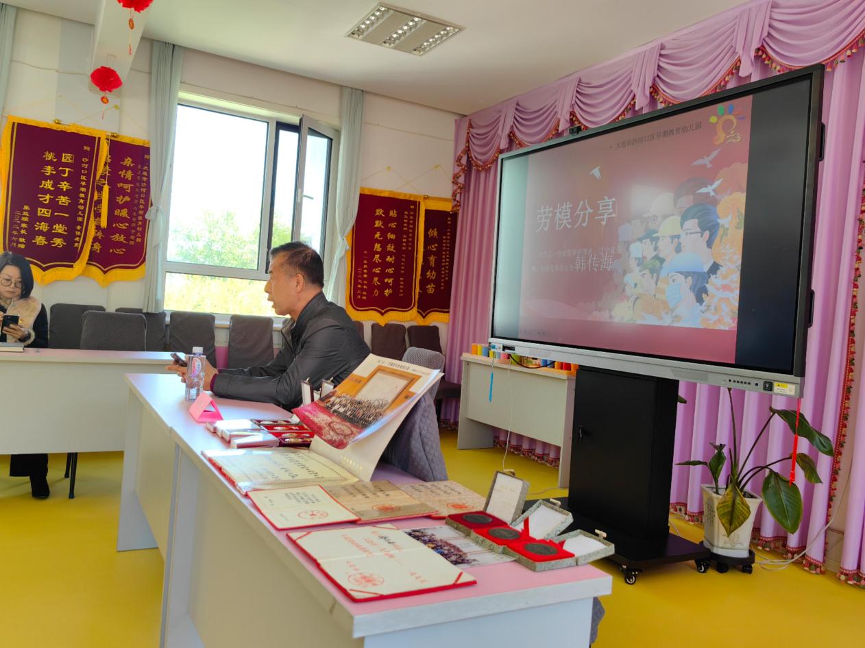 4月28日下午,沙河口区教育局关工委、早期教育幼儿园关工委牵头举办“劳模精神润师心·匠心筑梦育桃李”师德主题活动,联合桃山社区关工委邀请全国“五一”劳动奖章获得者、辽宁省劳模、全国优秀营业员韩传海,与本园教师、社区代表及沙区第六幼儿园7名教师代表共40余人,共话劳模精神与幼教初心。