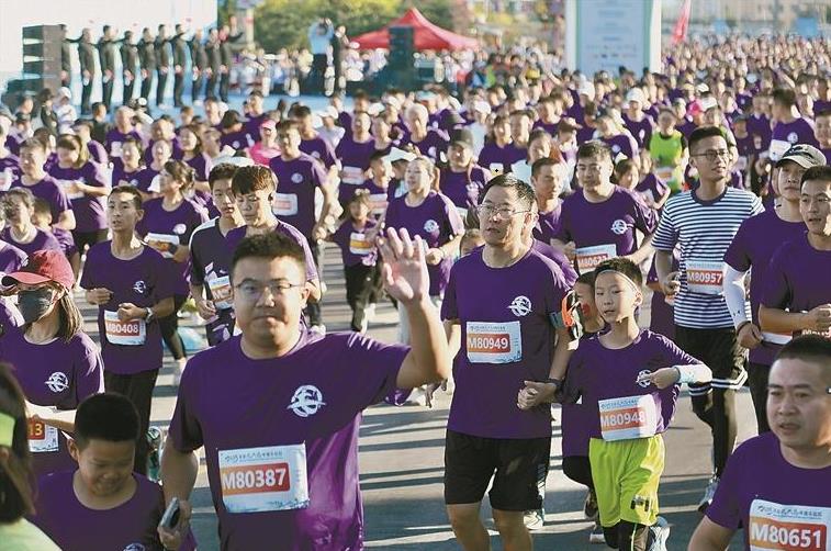 昨日,2025大连长兴岛半程马拉松在秋日晨光中鸣笛开跑。大连新闻传媒集团记者王韬飞 摄
