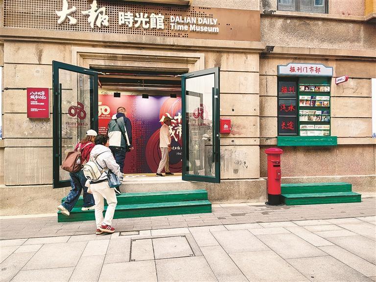 到“大报时光馆”参观的游客,有白发苍苍的耄耋老人,有风华正茂的青年,也有活泼好动、好奇心爆棚的孩子。孩子们最爱活字印刷体验,自己从字库中拣字拼出心仪的词句,制作一枚活版印刷书签。一名姓张的小朋友在爷爷的带领下,早早就来到了时光馆:“我昨天在大连博物馆才看到《人民呼声》的介绍,今天在这里就看到了《人民呼声》创刊号原件,还可以摆字印一张书签,真有意思。”年轻人则更爱在“大报时光馆”的内外打卡拍照——报刊门市部拍一张,瞬间回到上世纪80年代;拍报机上也来一张,让自己成为《大连日报》创刊80周年纪念特刊封面的新闻主角……年长的参观者,则更多地停留在红色区域,欣赏“凝固在纸墨上的红色记忆”“浓缩在字里行间的城市日记”“定格在百姓相册的时代瞬间”,了解党报上的党史和大连城市发展史。1945年11月1日的《人民呼声》创刊号、1946年3月7日的《人民呼声》号外《和平实现了》、1949年4月1日的《旅大人民日报》,第一次以原件的形式公开展出,吸引了很多游客拿出手机相机拍照记录。“和平实现了,这是中国老百姓的胜利!和平实现了,这是中国老百姓的胜利!”号外前,不时有人一字一句地念着。“很珍贵的,快来看,以前都是在电影里看见报童喊‘号外!号外!’原来是这个样子的。”一位姓李的女士向她的家人热情地介绍。跟着家人来大连旅游的王女士是一位老报人,退休前在《承德日报》工作,“跟《大连日报》一样,我们《承德日报》不久前也刚刚迎来创刊80周年。看到这个展览,感到特别亲切,希望《大连日报》越办越好。”