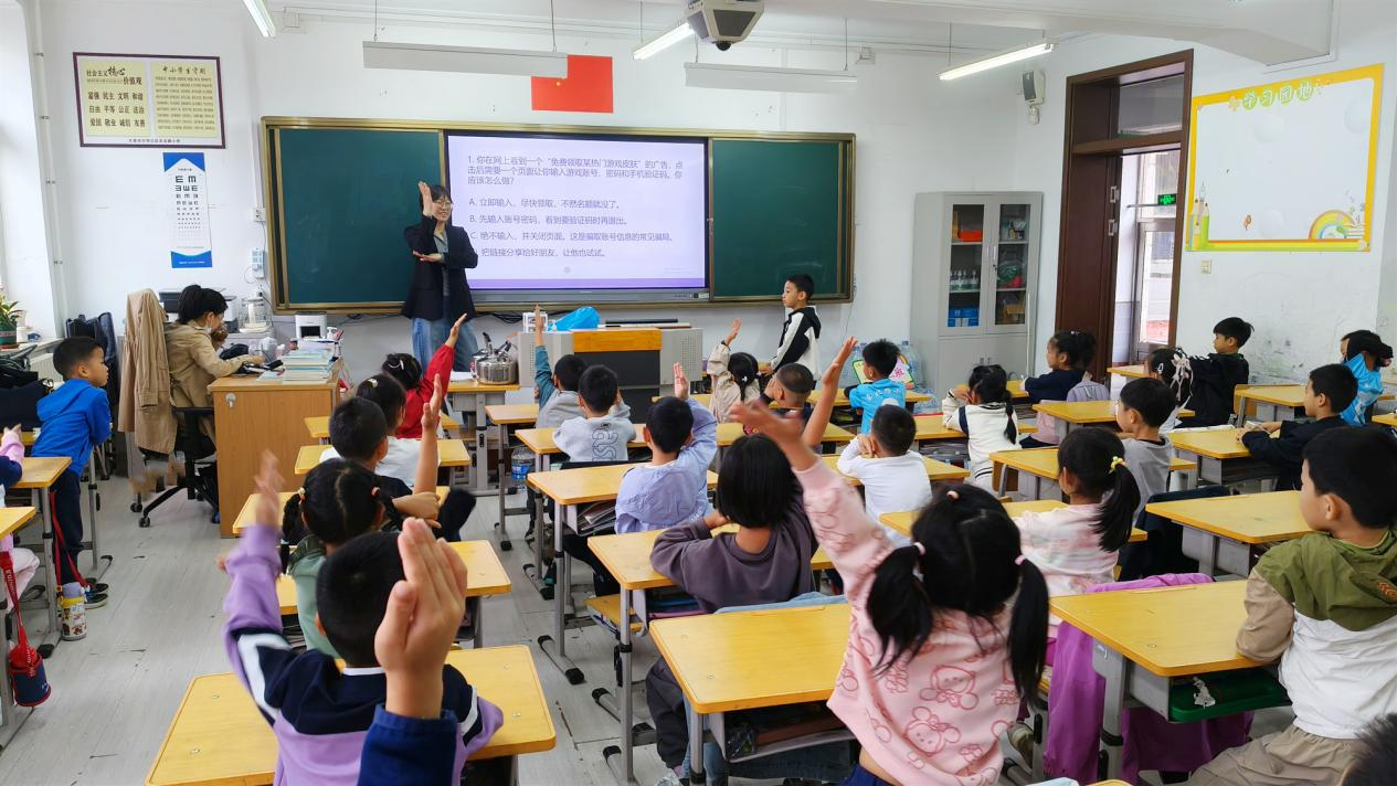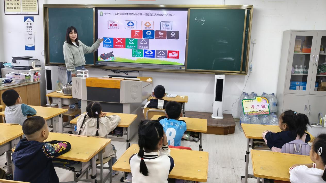 随后,西安路街道天兴社区垃圾分类专干张鑫老师走进课堂,为同学们带来了一场精彩的《垃圾分类知识讲座》。讲座中,她根据小学生的生理和年龄特点,现场拿出不同种类的垃圾模型,如塑料瓶、果皮、废旧电池等,逐一讲解它们的分类标准与处理方式,并设置“垃圾分类小达人”抢答环节。“废旧电池属于什么垃圾?”“厨余垃圾可以用来做什么?”同学们积极举手、踊跃回答,在轻松愉快的氛围中不仅学会了如何正确分类垃圾,更深刻理解了垃圾分类对保护环境、节约资源的重要性。不少同学表示,今后会主动带动家人参与垃圾分类,争做绿色生活的践行者。