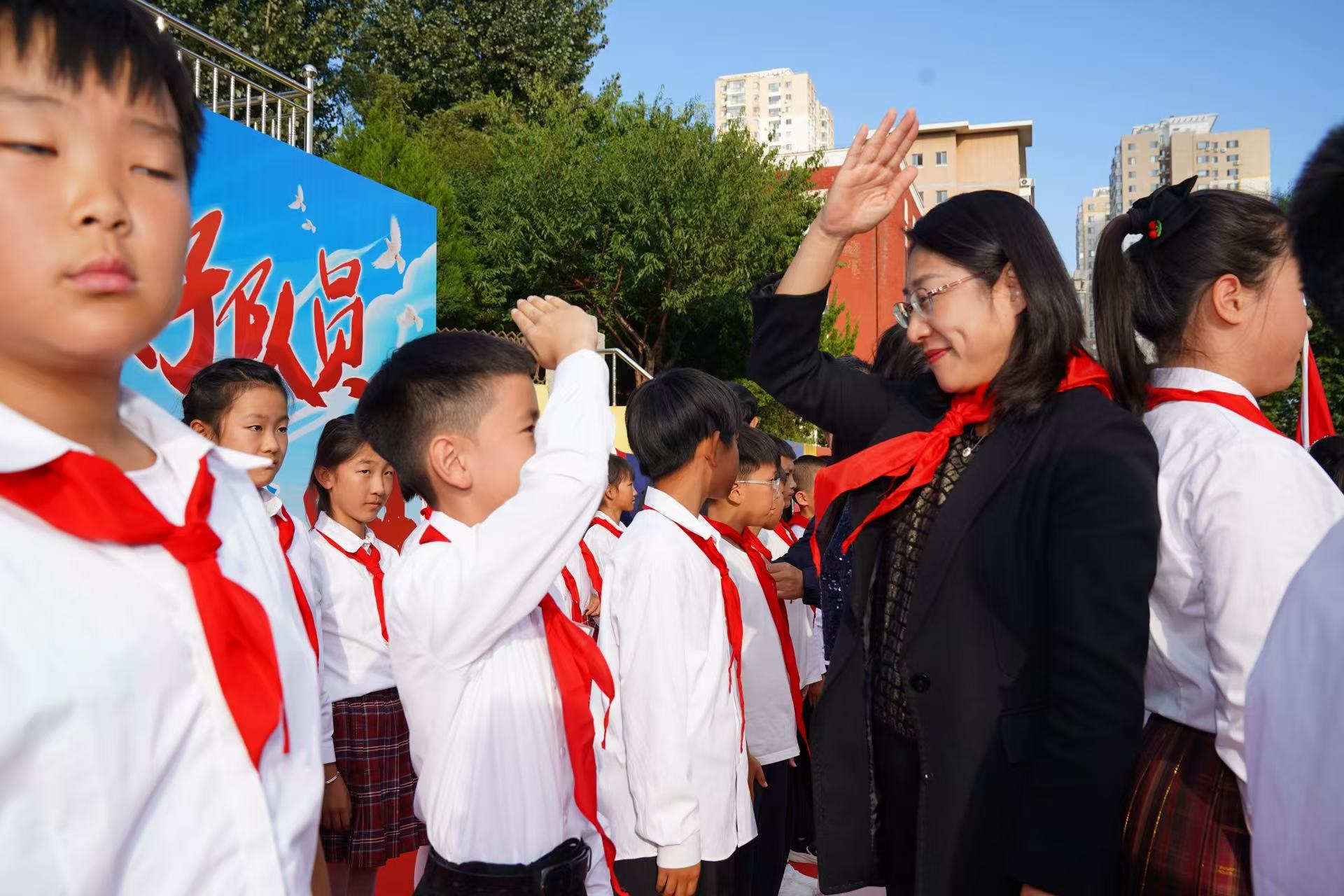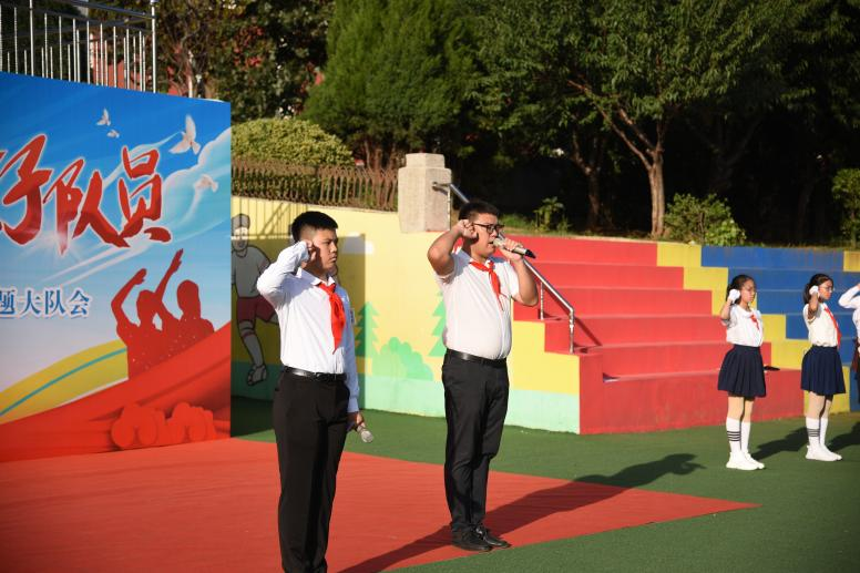 “准备着,为共产主义事业而奋斗!”“时刻准备着!”大队辅导员王拓老师带领全体少先队员庄严呼号,响亮的口号响彻校园,成为全体队员砥砺前行的精神号角。