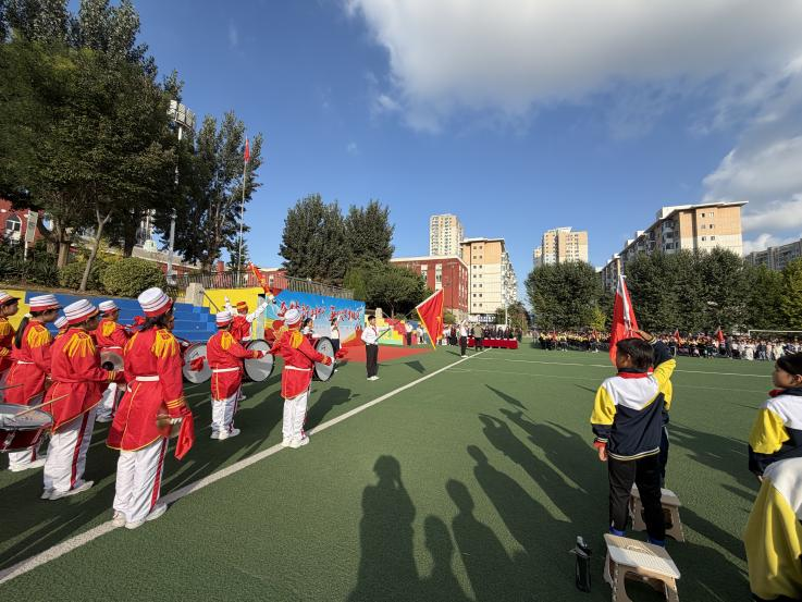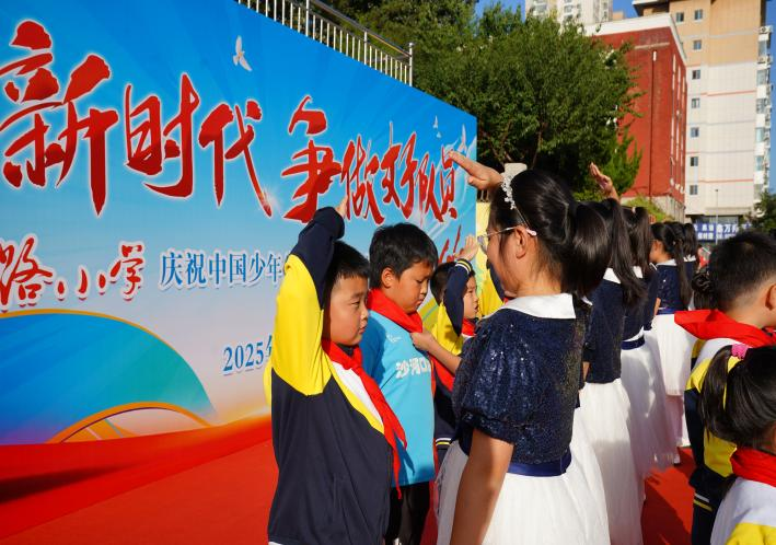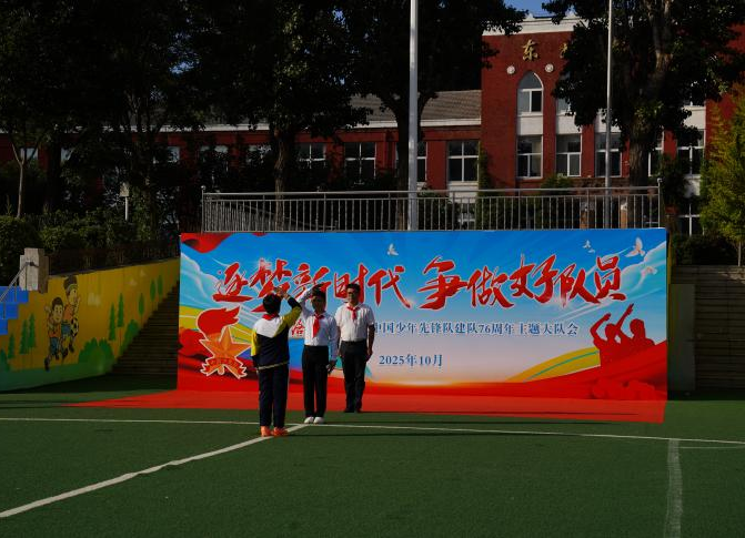 2025年10月13日,沙河口区东北路小学操场上队旗飘扬、鼓号嘹亮,全校师生齐聚于此,举行“逐梦新时代 争做好队员”十一三大队会,共同庆祝中国少年先锋队第76个建队日。沙河口区慈善总会会长、沙区老战士报告团副团长熊建德,沙区教育局关工委常务副主任林春受邀出席活动,少先队员代表为嘉宾们佩戴红领巾,以少先队最诚挚的礼仪表达欢迎与敬意。