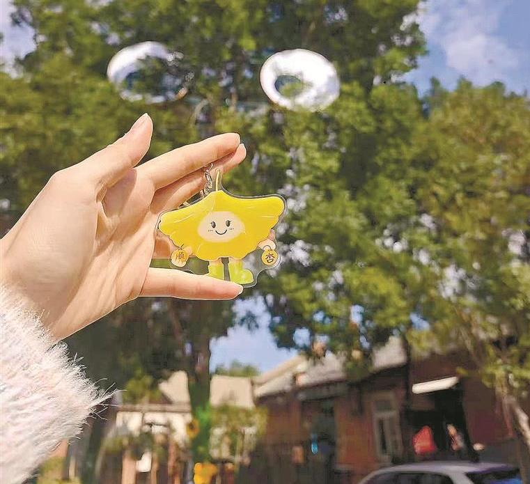 ▲巨型“一叶知顺杏”艺术装置成为热门合影地标。