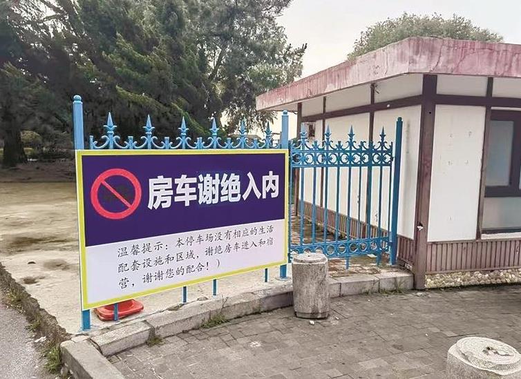 今年暑期旅游旺季,星海公园西门停车场入口处设置了醒目的提示牌,明确标示:“房车谢绝入内”,并说明原因为“本停车场未配备相应生活设施与专用区域,不便接待房车停靠与宿营”。