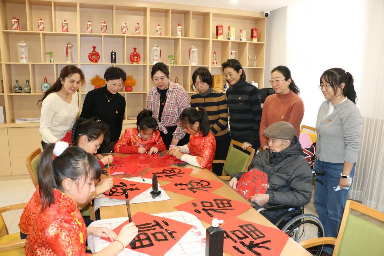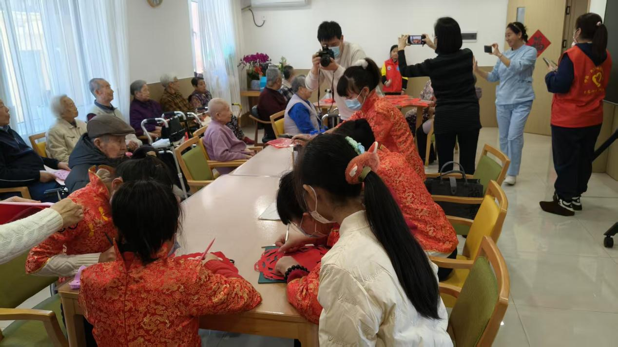 孩子们则怀着真诚的敬意,将亲手书写的一张张“福”字和精心剪制的剪纸作品送到老人手中,以童真笔墨传递真挚祝福。