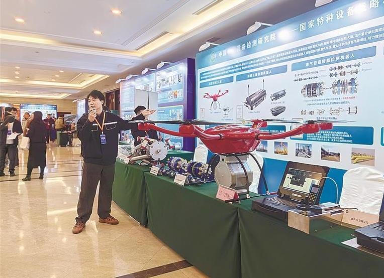 中国特种设备检测研究院工作人员介绍云雀六旋翼监测无人机。大连新闻传媒集团记者谢小芳 摄