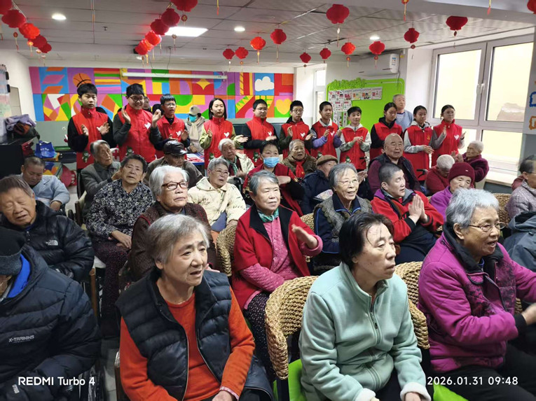 活动尾声,孩子们与老人共同表演了合唱《北京的金山上》,现场笑声不断。养老院负责人表示:“这样的活动不仅丰富了老人的精神生活,更让年轻一代学会了感恩与奉献。”七年七班的学雷锋服务队的队长杨淇文同学表示未来会带动身边更多同学参与活动,一起将尊老爱老内化于心、外化于行。