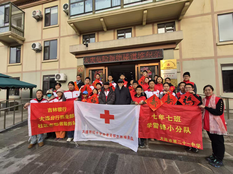 寒假翩然而至,同学们有的在书海中深耕知识,有的在文体活动中提升素养,更有很多积极投身家校社协同的寒假实践,展现青春担当。1 月 31 日,在沙河口区教育局关工委指导、本校关工委组织下,大连市第二十一中学七年七班的同学们带着新春的祝福与温暖,走进甘井子街道爱康养老院,开展了一场别开生面的“福字传情,老少同乐”志愿服务活动。
