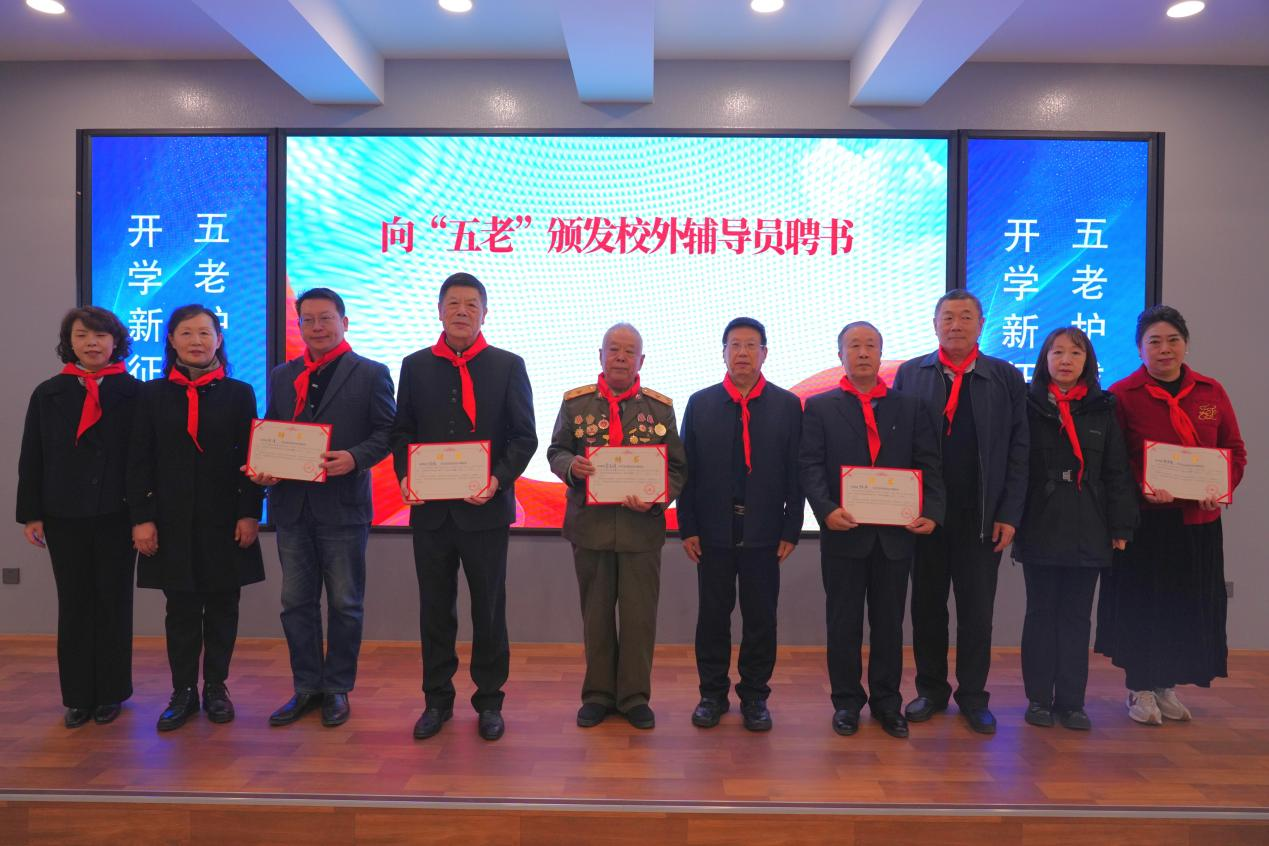 市关工委副主任原柏令、市教育局关工委秘书长于慧珠、区关工委主任谭坚、区委教育工委专职副书记徐瑾、大连市第七十九中学党总支书记王建美共同为五位来自不同领域的“五老”颁发了校外辅导员聘书。他们分别是:全国十佳少先队志愿辅导员、全国岗位学雷锋标兵李光祥;大连市沙河口区老战士报告团、法治宣讲团团长杜尚民;大连市心理咨询师协会会长王克强;沙河口区教育局关工委常务副主任、市教育系统“春语”工作室负责人林春;以及大连连洋生物科技有限公司、大连连洋生物爱心志愿队负责人张洋。这标志着他们将正式成为学生们成长道路上的重要引路人,定期为孩子们提供精神滋养和专业指导。