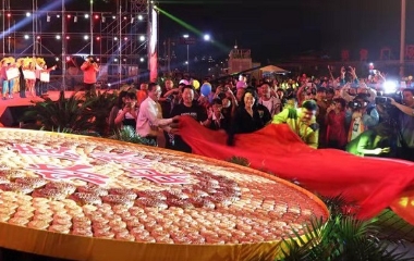 这个由2019块小月饼拼组成的超级月饼,寓意着无数个小家庭共同汇聚成了祖国大家庭,“我爱我家”,祝愿家庭团圆和美,祖国繁荣昌盛。
