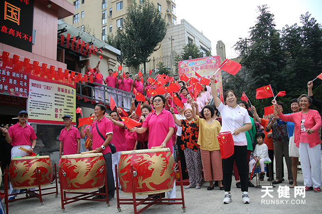 9月27日上午,西岗区人民广场街道桥东社区组织辖区党员志愿者、共建单位、社区工作者等80余人在辖区小广场共同唱响《我和我的祖国》。