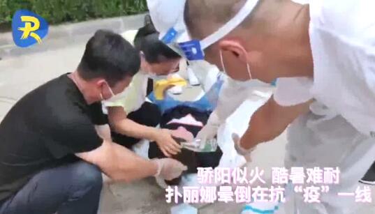 7月30日是椒金山街道全民核酸检测的第七个工作日,在骄阳似火的三伏天里,已经连续奋战在抗疫一线的党群服务中心人员朴丽娜,在核酸检测登记的岗位上晕倒在地。