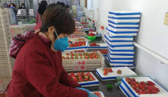 包装、验收、称重、装车,工人们全部统一佩戴口罩,有序分工。院内虽然没有往日般热闹,但仍然陆续有村民前来运送草莓。
